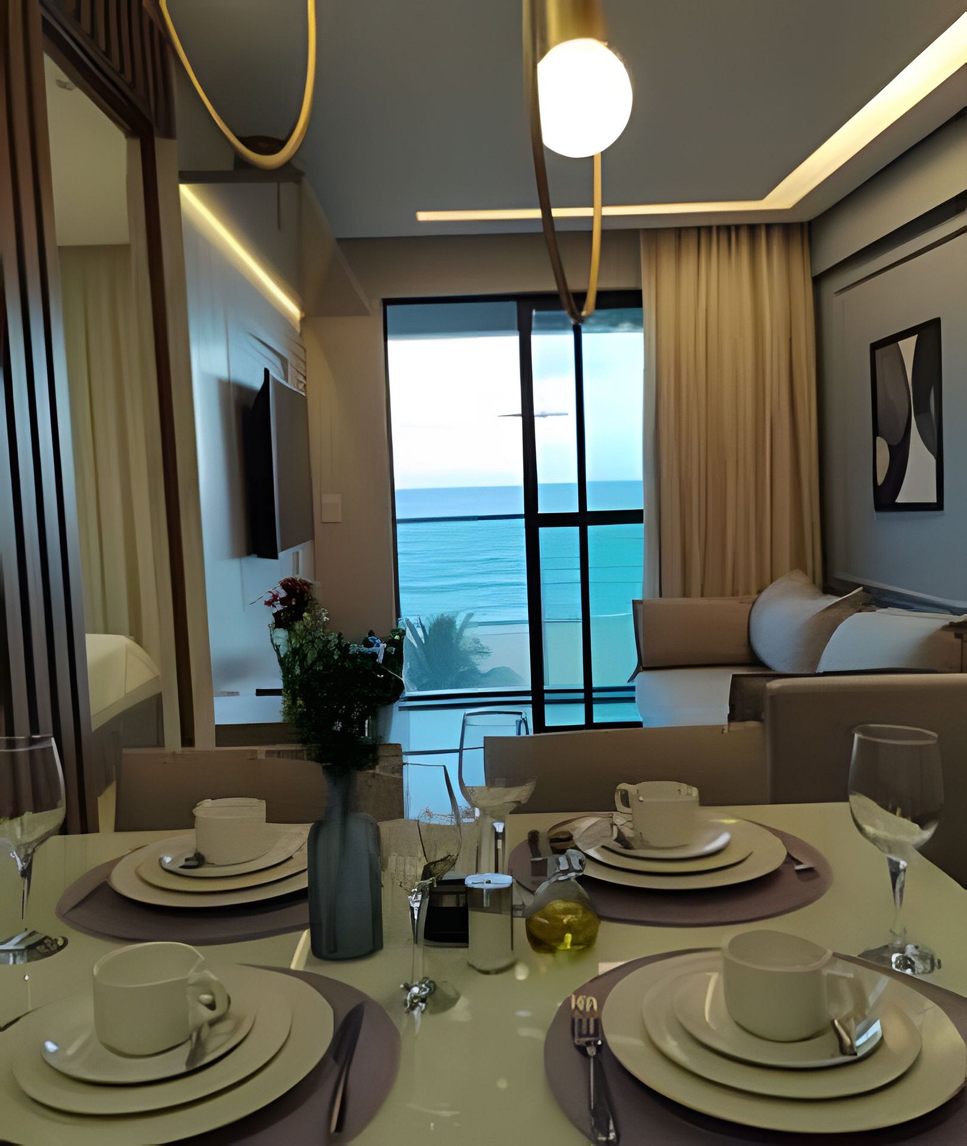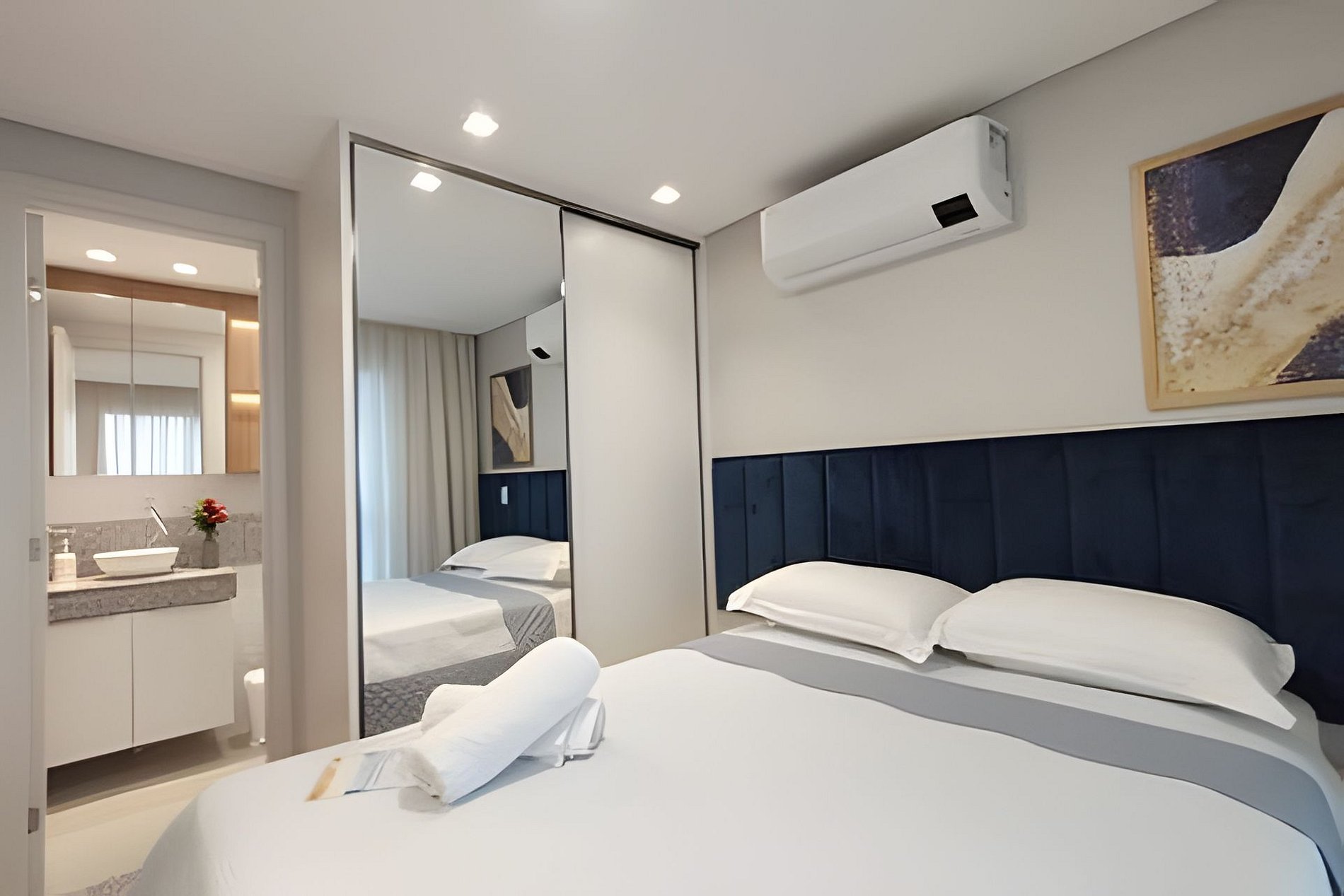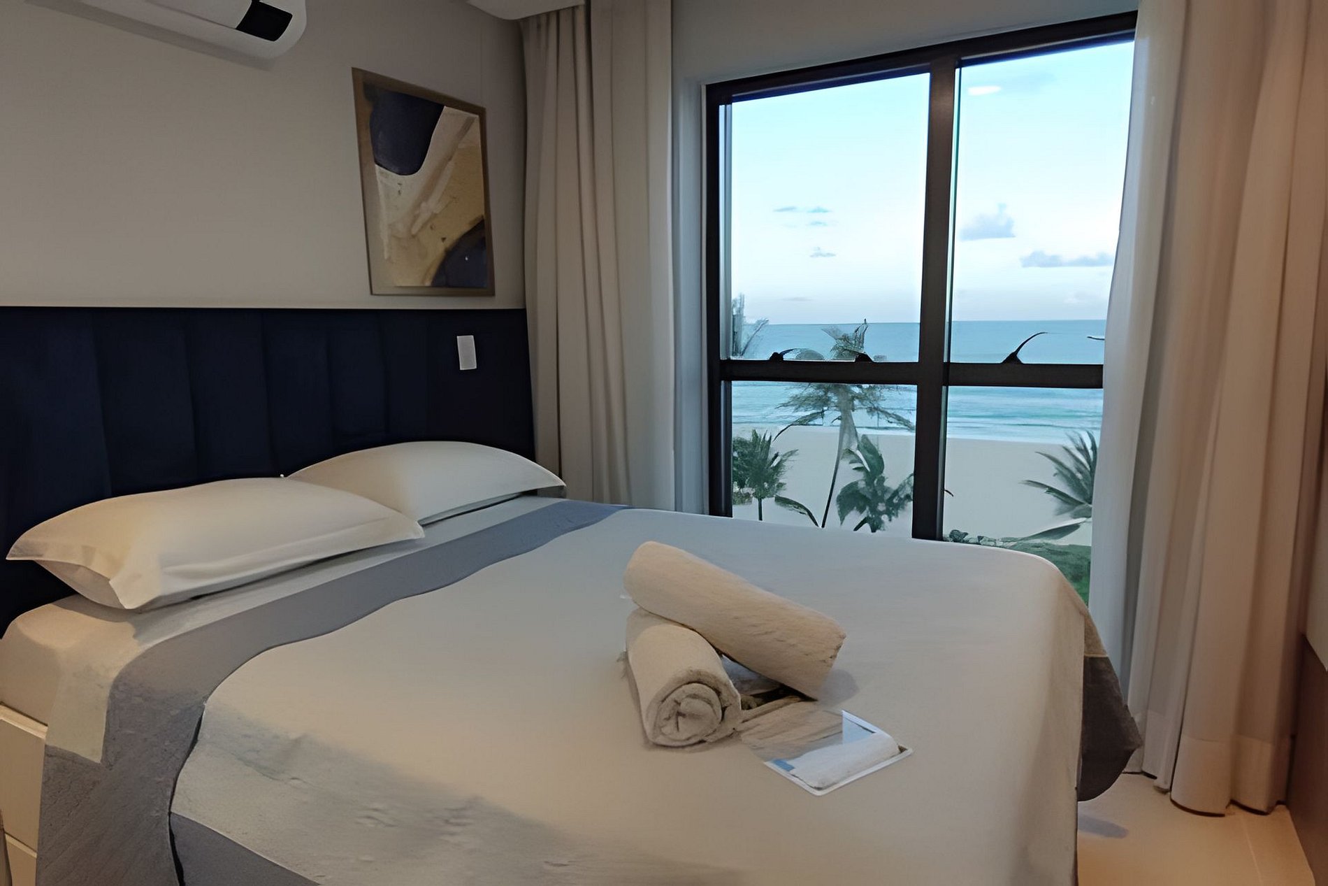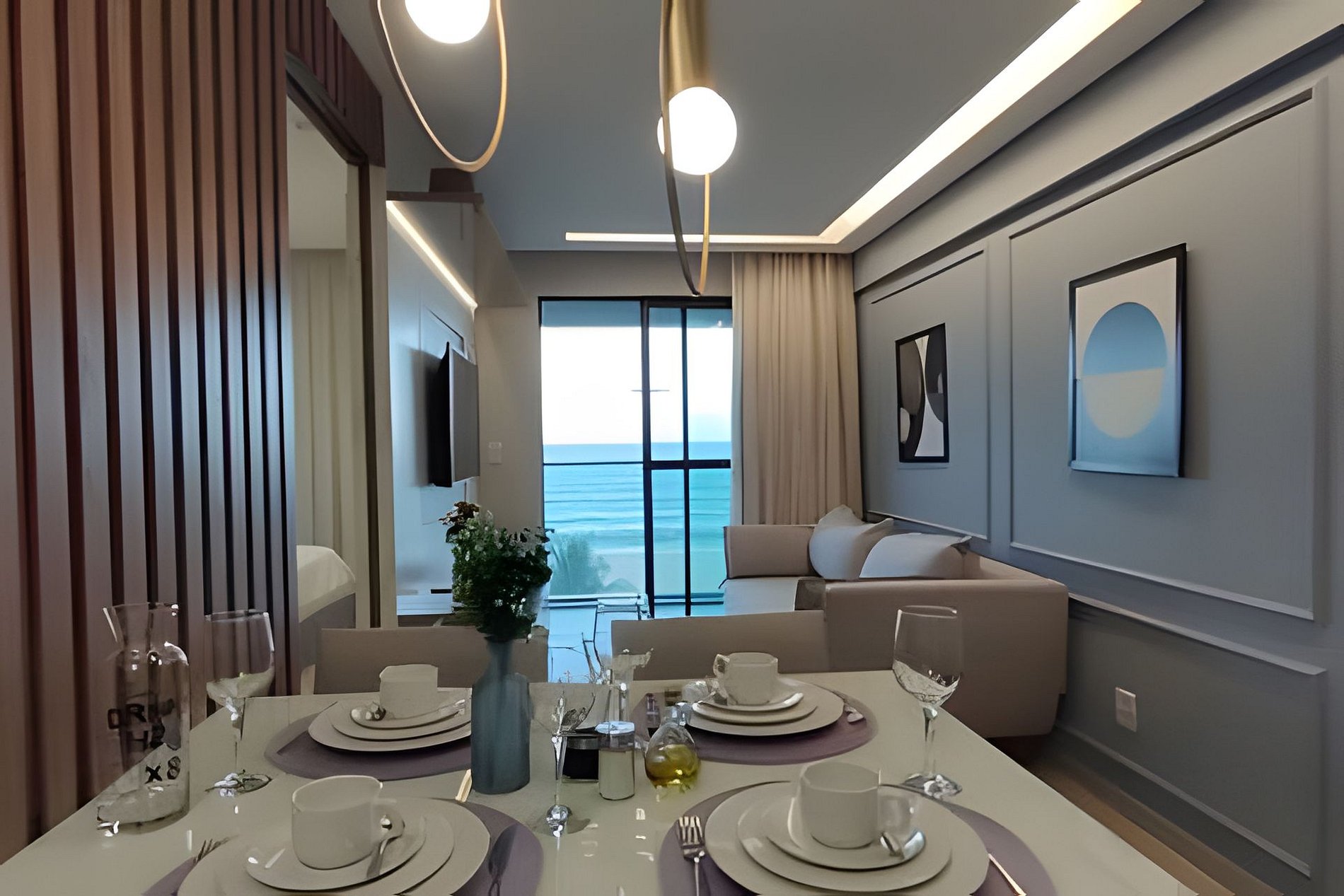 O apartamento é composto de sala, quarto, banheiro, cozinha e varanda. Dispomos também de Liquidificador, sanduicheira elétrica e uma máquina de café com cápsulas disponíveis sem custo adicional. O painel da TV é giratório, possibilitando o uso em dois ambientes. O prédio possui uma ótima piscina com vista para o mar, uma pequena academia e uma sala de reuniões.